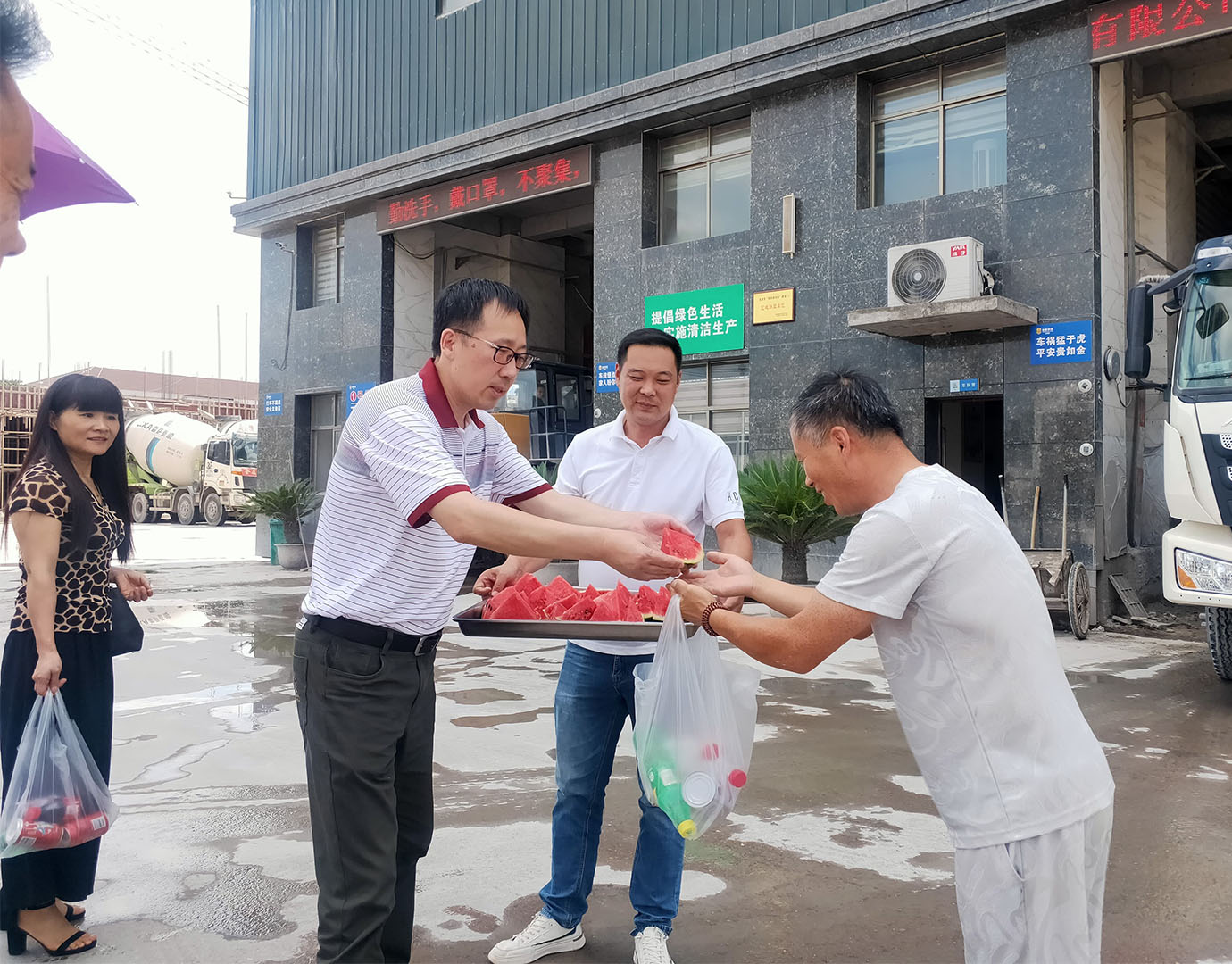 活動(dòng)中,領(lǐng)導(dǎo)們親臨生產(chǎn)一線,把清涼物資送到員工手中,把關(guān)懷慰問送到了員工的心坎,向員工的辛勤付出和默默奉獻(xiàn)表示了感謝和敬意。員工們激動(dòng)地接過一瓶瓶飲料、一塊塊西瓜,露出了發(fā)自心底的笑容。傅融總裁關(guān)切地叮囑大家在保證安全生產(chǎn)的同時(shí),還要注意自己身體健康,防止高溫中暑。工會(huì)主席邵建根強(qiáng)調(diào),各分工會(huì)要切實(shí)落實(shí)好防暑降溫措施,備齊防暑物資,科學(xué)合理地安排作息時(shí)間,適當(dāng)避開高溫時(shí)段作業(yè),把員工的人身安全放在第一位。