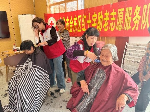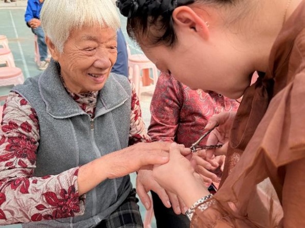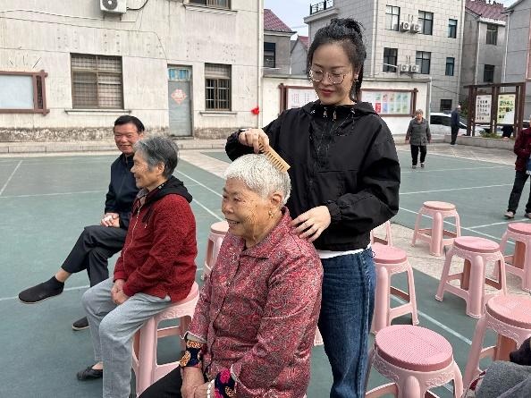 物資表心意,服務(wù)更暖心。活動(dòng)現(xiàn)場(chǎng)專門設(shè)置了公益理發(fā)、健康義診、推拿服務(wù)等志愿項(xiàng)目,由醫(yī)生和志愿者們?yōu)槔先颂峁┵N心服務(wù),現(xiàn)場(chǎng)氣氛溫馨而有序。87歲的章秋玉老人家在推拿醫(yī)生按完肩頸后,紅了眼眶:“年年都想著我們,真是和家里人一樣親。”?